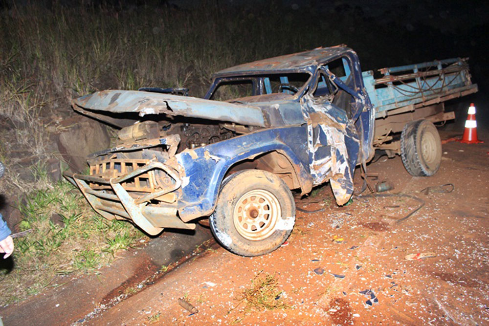 A camionete C10 seguia sentido Água Branca ao bairro Jardim Seminário e no trevo de acesso a Avenida Julio Assis Cavalheiro acabou subindo no canteiro e capotou.