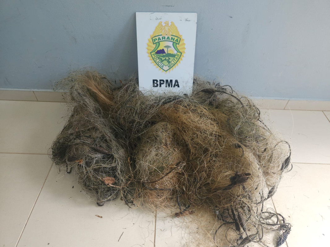 No dia 16 de fevereiro de 2026, a equipe da Polícia Militar Ambiental ROTAM/AQUÁTICA da 4ª Companhia realizava patrulhamento em área rural do município de Candói, quando visualizou redes de pesca acumuladas ao lado de um barracão.