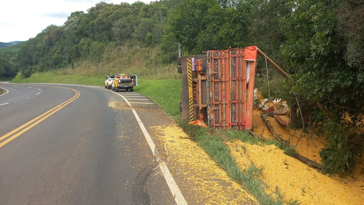Com o impacto, a carga de milho que era transportada ficou espalhada fora da pista.O condutor, um homem de 37 anos, sofreu ferimentos moderados e recebeu atendimento da equipe do SAMU, sendo encaminhado para um hospital em Guarapuava.