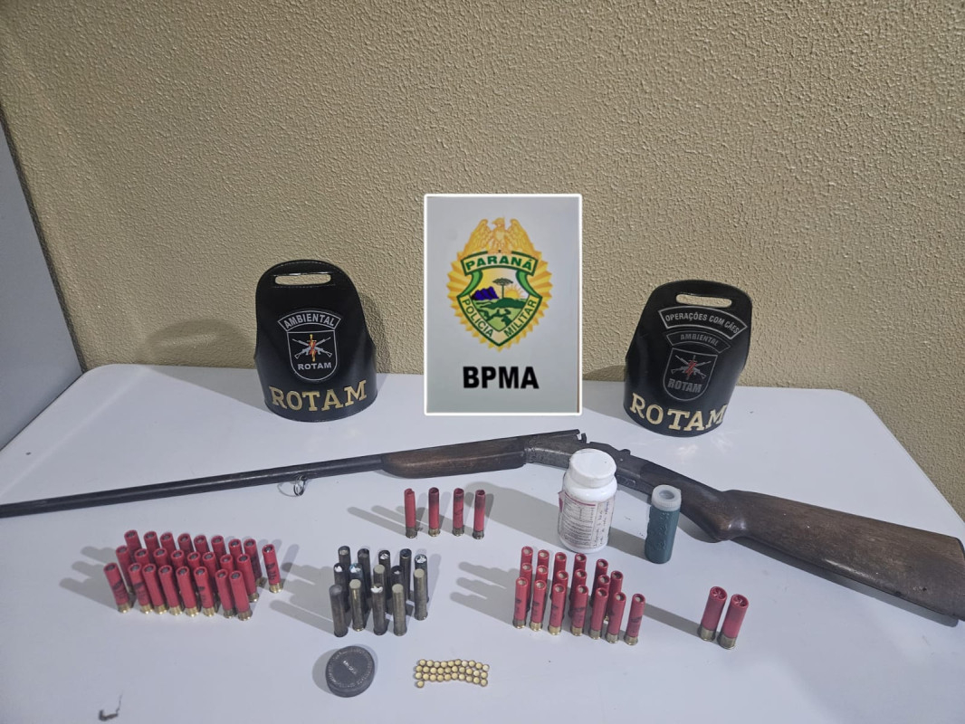 No dia 04 de abril de 2026, uma equipe da ROTAM da Polícia Militar Ambiental realizou a apreensão de arma de fogo e munições durante patrulhamento em área rural do município de Pinhão, na região Centro-Sul do Paraná.